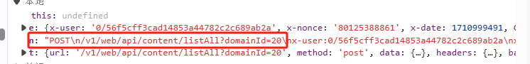 o = "".concat("post".toUpperCase(), "\n").concat(t.url.replace(t.baseURL, ""), '\nx-user:').concat(r["x-user"], "\nx-nonce:").concat(r["x-nonce"], "\nx-date:").concat(r["x-date"], "\nContent-Md5:").concat(r["Content-Md5"], "\n");