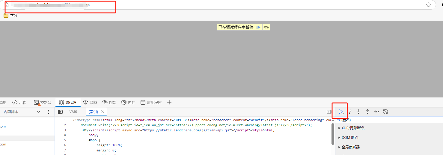 浏览器中输入网址,进入断点