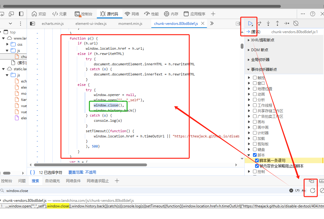 边调试,边搜索window.close,找到该文件