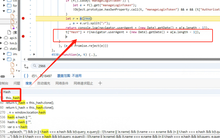 分析可知headers中Hash是需要破解的数据通过搜索Hash找到加密处