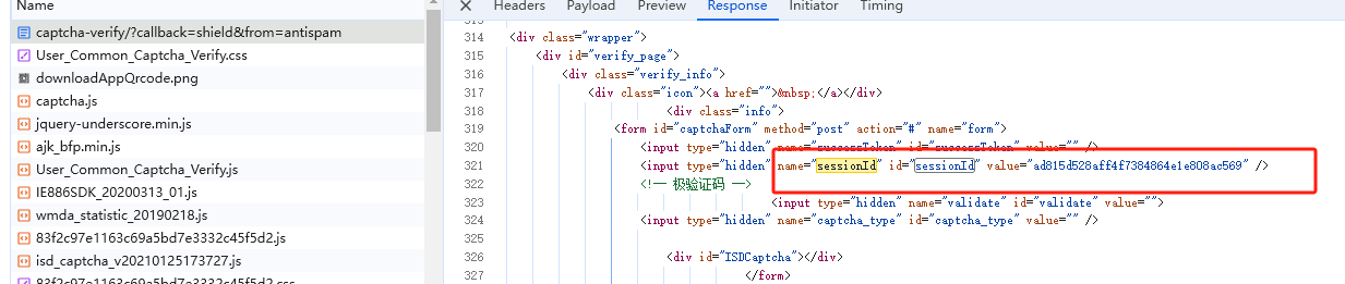 sessionId:是第一个链接拿到的sessionId