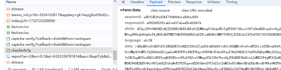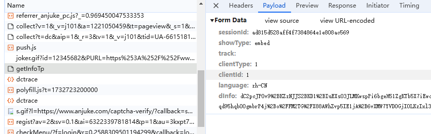 dInfo:通过js逆向得到(与第二个请求链接中的dInfo值相同)