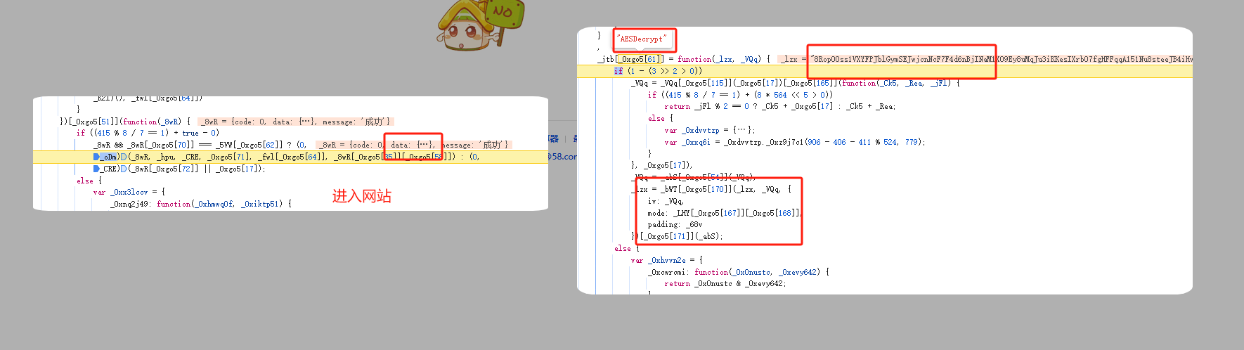 跟栈,进入_0eL[_0x7d3[7]][_0x7d3[247]]函数,发现和上面的AESEncrypt都一样只不过传参不同,直接调用就好