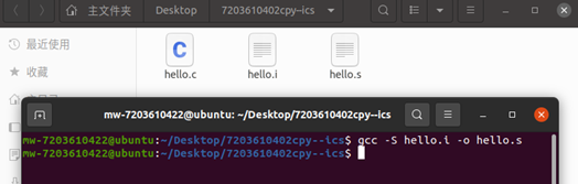 编译的命令:gcc -S hello.i -o hello.s
