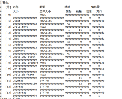 elf.txt hello.o的ELF