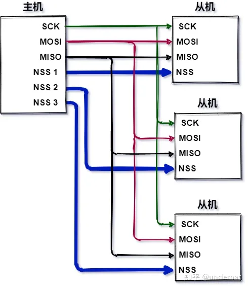 SS : Slave Select 片选信号,由主机发送,以控制与哪个从机通信,通常是低电平有效信号。