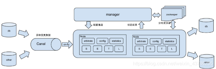 每个instance都有一个独立的配置文件instance.properties,不同的instance可以采集不同的mysql数据库,也就是一个canal可以对应多个mysql数据库。在instance里面有一个小队列,可以理解为是jvm级的队列,instance抓取来的数据先放入到队列中,队列可以有很多出口: ①mq模式:canal server自己主动把数据推送到kafka,这个比较简单,一行代码不用写,只需要配个kafka|rocketmq|rabbitmq的地址, 每个instance对应kafka的一个topic,数据是json串。 这种方式虽然简单,但是其缺点主要体现在两个个方面,一个instance对应一个topic,所有表都在这一个topic,所以实时的时候要进行分流。 另一方面,因为数据是json,并且携带了很多冗余信息,但是数据量大的时候传输效率比较低。 ②tcp模式:启动canal客户端连接到canal服务器端之后,主动去拉取数据,可以定义多长周期消费多少数据。缺点在于抓取出来的是序列化压缩的数据, 所以需要反序列化,解压,比较麻烦。优点在于我们可以进行压缩,过滤掉没用的冗余信息,只保留我们需要的信息,提交传输效率。########################################################## common argument ############################################################### tcp bind ip |canal server绑定的本地IP信息,如果不配置,默认选择一个本机IP进行启动服务canal.ip =# register ip to zookeeper |canal server注册到外部zookeeper、admin的ip信息 (针对docker的外部可见ip)canal.register.ip =# canal server提供socket服务的端口,端口号,是给tcp模式(netty)时候用的,如果用了kafka或者rocketmq,就不需要配置这个端口canal.port = 11111canal.metrics.pull.port = 11112# canal instance user/passwd canal数据端口订阅的ACL配置 (v1.1.4新增)如果为空,代表不开启#canal.user = canal# canal数据端口订阅的ACL配置 (v1.1.4新增)如果为空,代表不开启#canal.passwd = E3619321C1A937C46A0D8BD1DAC39F93B27D4458# canal admin config|canal链接canal-admin的地址 (v1.1.4新增)canal.admin.manager = 127.0.0.1:8089# admin管理指令链接端口 (v1.1.4新增)canal.admin.port = 11110# admin管理指令链接的ACL配置 (v1.1.4新增)canal.admin.user = admin# admin管理指令链接的ACL配置 (v1.1.4新增)canal.admin.passwd = 4ACFE3202A5FF5CF467898FC58AAB1D615029441# canal server链接zookeeper集群的链接信息,单机部署不需要配置,集群部署需要配置canal.zkServers =# flush data to zk| canal持久化数据到zookeeper上的更新频率,单位毫秒canal.zookeeper.flush.period = 1000canal.withoutNetty = false# tcp, kafka, RocketMQ| Canal模式设定,主要有tcp和mq两种类型canal.serverMode = tcp# flush meta cursor/parse position to file|主要针对h2-tsdb.xml时对应h2文件的存放目录,默认为conf/xx/h2.mv.dbcanal.file.data.dir = ${canal.conf.dir}canal.file.flush.period = 1000## memory store RingBuffer size, should be Math.pow(2,n) |canal内存store中可缓存buffer记录数,需要为2的指数canal.instance.memory.buffer.size = 16384## memory store RingBuffer used memory unit size , default 1kb | 内存记录的单位大小,默认1KB,和buffer.size组合决定最终的内存使用大小canal.instance.memory.buffer.memunit = 1024## meory store gets mode used MEMSIZE or ITEMSIZE | canal内存store中数据缓存模式## 1. ITEMSIZE : 根据buffer.size进行限制,只限制记录的数量## 2. MEMSIZE : 根据buffer.size * buffer.memunit的大小,限制缓存记录的大小canal.instance.memory.batch.mode = MEMSIZEcanal.instance.memory.rawEntry = true## detecing config |是否开启心跳检查canal.instance.detecting.enable = false# 心跳检查sql#canal.instance.detecting.sql = insert into retl.xdual values(1,now()) on duplicate key update x=now()canal.instance.detecting.sql = select 1# 心跳检查频率,单位秒canal.instance.detecting.interval.time = 3# 心跳检查失败重试次数canal.instance.detecting.retry.threshold = 3# 心跳检查失败后,是否开启自动mysql自动切换# 说明:比如心跳检查失败超过阀值后,如果该配置为true,canal就会自动链到mysql备库获取binlog数据canal.instance.detecting.heartbeatHaEnable = false# support maximum transaction size, more than the size of the transaction will be cut into multiple transactions deliverycanal.instance.transaction.size = 1024# mysql fallback connected to new master should fallback times# canal发生mysql切换时,在新的mysql库上查找binlog时需要往前查找的时间,单位秒# 说明:mysql主备库可能存在解析延迟或者时钟不统一,需要回退一段时间,保证数据不丢canal.instance.fallbackIntervalInSeconds = 60# network config# 网络链接参数,SocketOptions.SO_RCVBUFcanal.instance.network.receiveBufferSize = 16384# 网络链接参数,SocketOptions.SO_SNDBUFcanal.instance.network.sendBufferSize = 16384# 网络链接参数,SocketOptions.SO_TIMEOUTcanal.instance.network.soTimeout = 30# binlog filter config