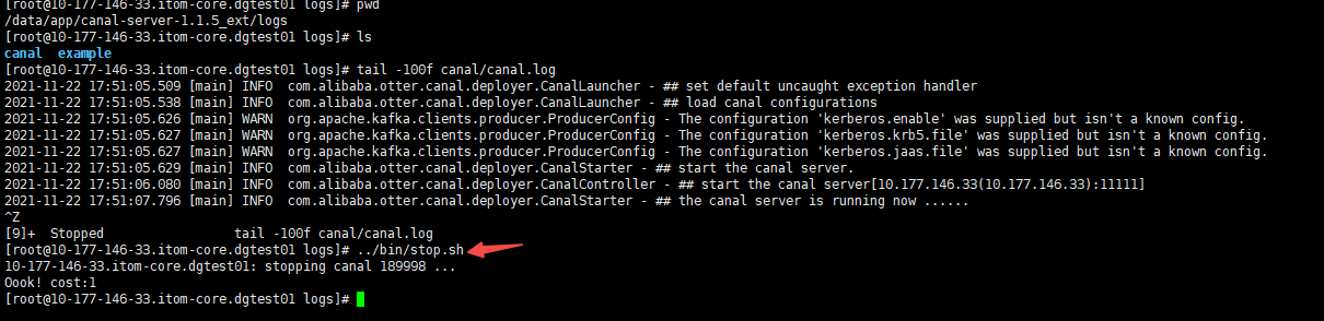 cd /data/app/canal-server-1.1.5 ./bin/startup.sh