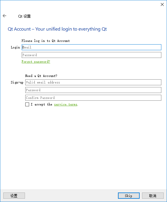 可以填写 Qt Account,或者直接跳过。