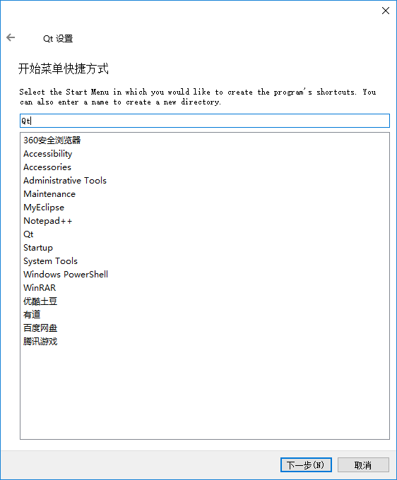 创建开始菜单快捷方式,默认即可。