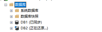 3)点击“确定”,还原成功后,左侧数据库显示“正在还原...”(PS:此时数据库不可用)。