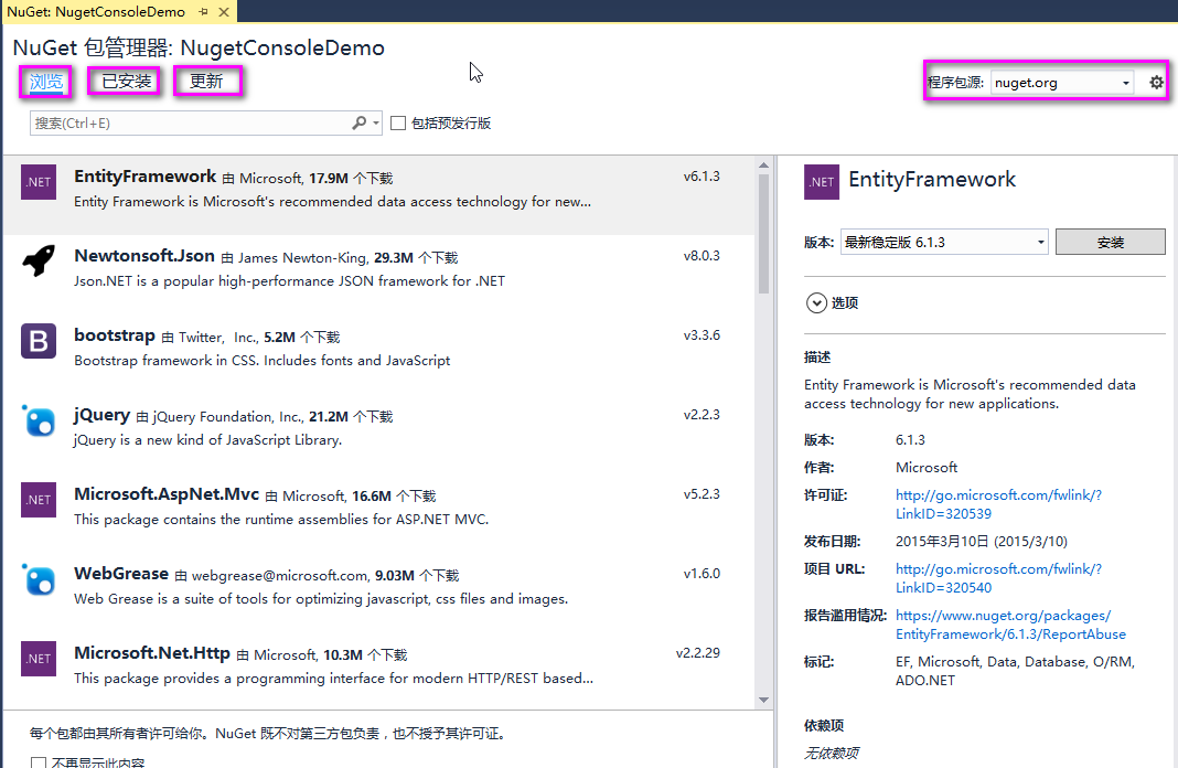 第二步:打开Nuget包管理器页面