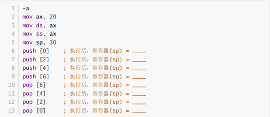 栈顶逻辑地址:0020:0030 ;逻辑地址:00230h