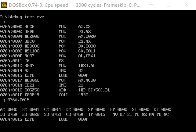 assume cs:code code segment mov ax, cs mov ds, ax mov ax, 0020h mov es, ax mov bx, 0 mov cx, cx s: mov al, [bx] mov es:[bx], al inc bx loop s mov ax, 4c00h int 21h code ends end