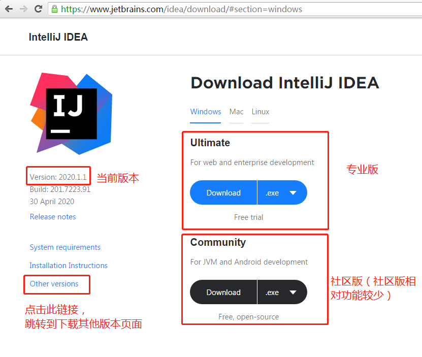 打开IEDA下载地址:https://www.jetbrains.com/idea/