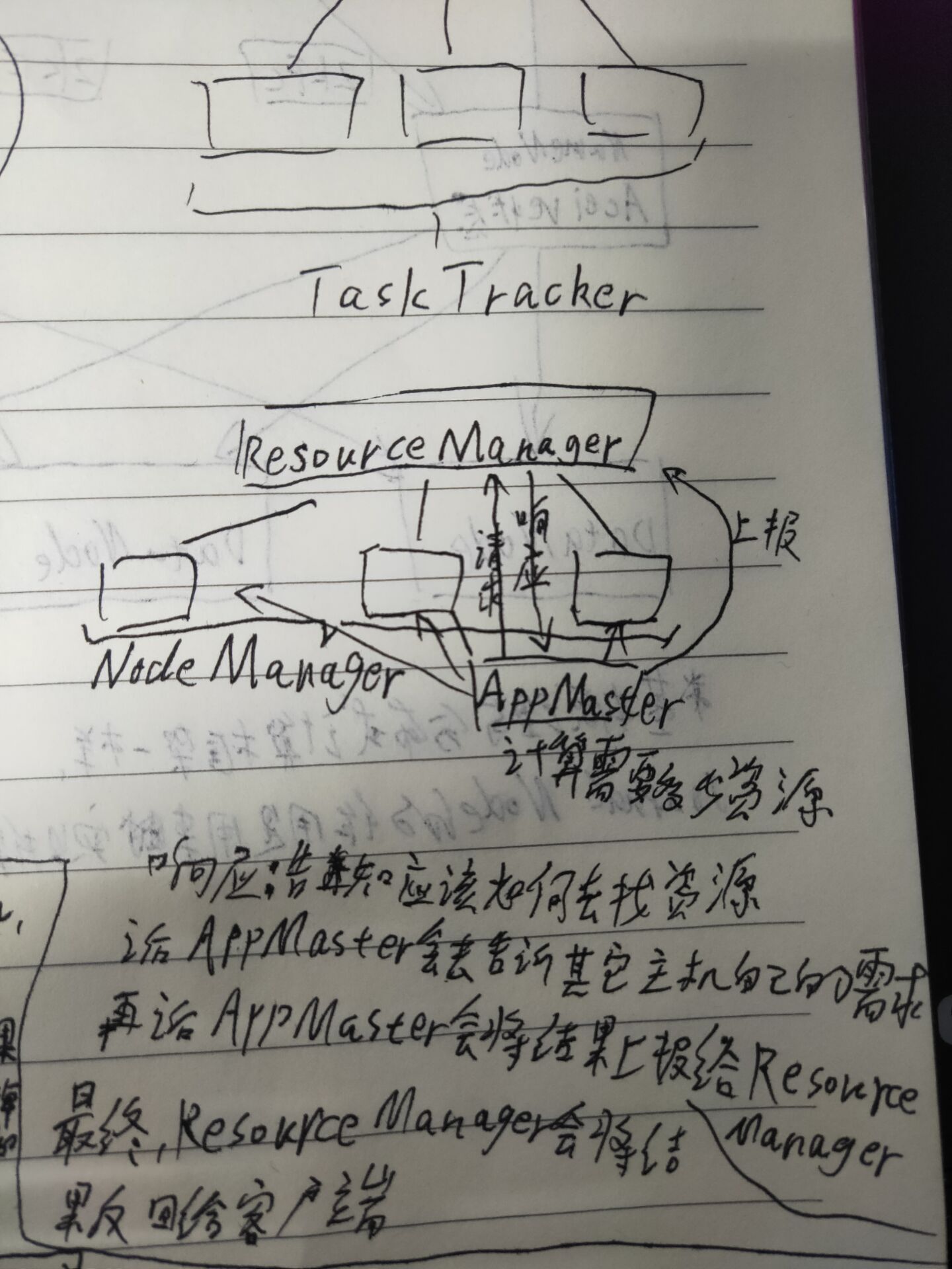分布式文件系统与分布式计算框架在1.x版本中只是最基本的形态,分布式计算框架在工作时,首先由resourcemanage下达命令,此时,会在其中一台nodemanager上生成一个APPmaster,由APPmaster计算本次任务所需多少资源,并向resourcemanage请求资源,resourcemanage进行响应,通知APPmaster这些资源应该向哪些nodemanager去取,以及应该怎样分配,之后APPmaster回去告知所用到的nodemanager自己的需求,工作开始进行,在工作结束时,APPmaster会将结果汇报给resourcemanage,最终由resourcemanage将结果返回给客户端。