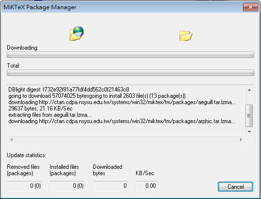 執行"所有程式”/ Miktex2.7/Settings/ 選擇Packages頁簽