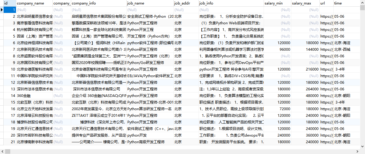 ) ENGINE=InnoDB AUTO_INCREMENT=1 DEFAULT CHARSET=utf8 COMMENT='招聘信息';