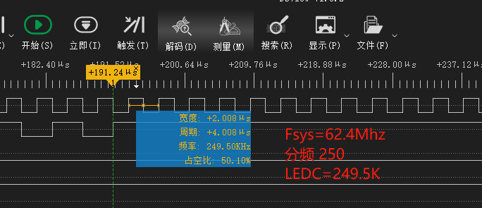 //配置分频和模式选择 ch58x_led_controller_init(CH58X_LED_OUT_MODE_DOUBLE, 250);