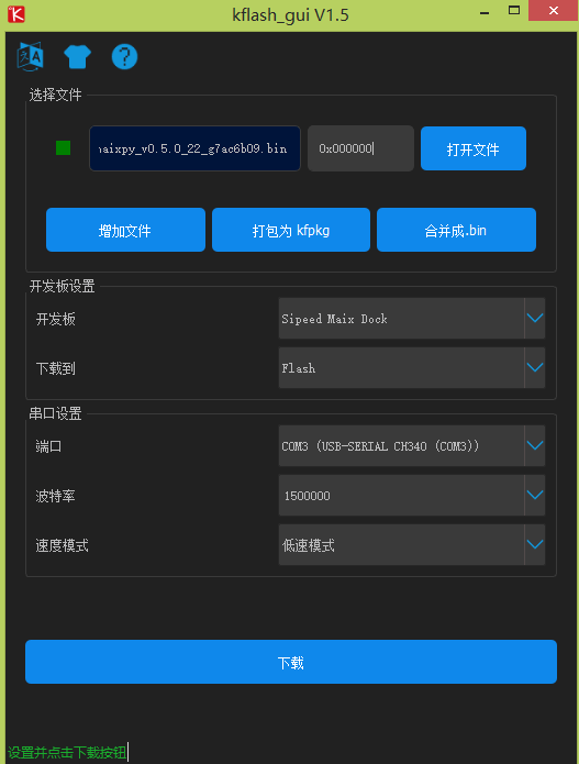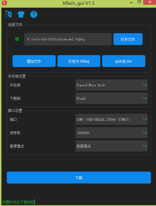 选择【打包为kfpkg】,将kmodel文件与Maixpy文件打包为kfpkg文件,之后再加载该文件,烧入flash