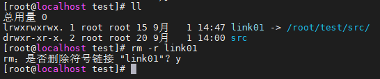 按照上述方法创建好link01软链接,如果想删除该软链接