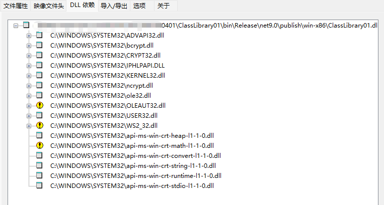 此时,导出的(C格式)函数只有“Add”这一个,DLL的文件依赖已经没有.NET运行库了: