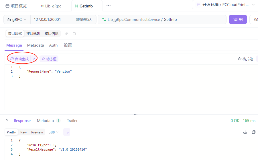 导入接口文件以后,可以看到GetInfo这个接口,还可以自动生成输入参数。