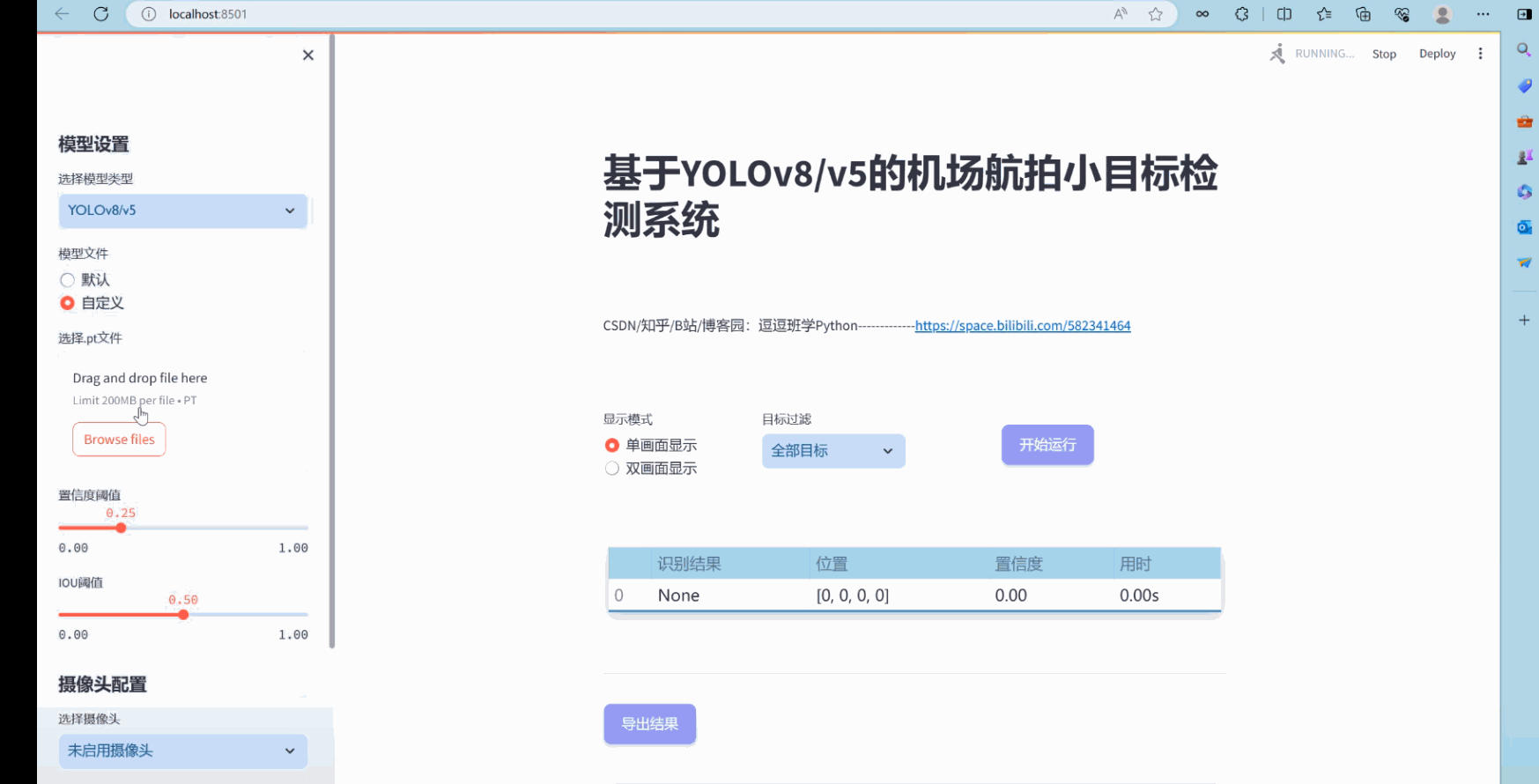 交互式Web界面设计:基于Streamlit框架设计了一个美观友好的Web界面,支持用户通过图片、视频和实时摄像头进行小目标检测,同时提供了模型切换功能,增强了系统的可用性和灵活性。