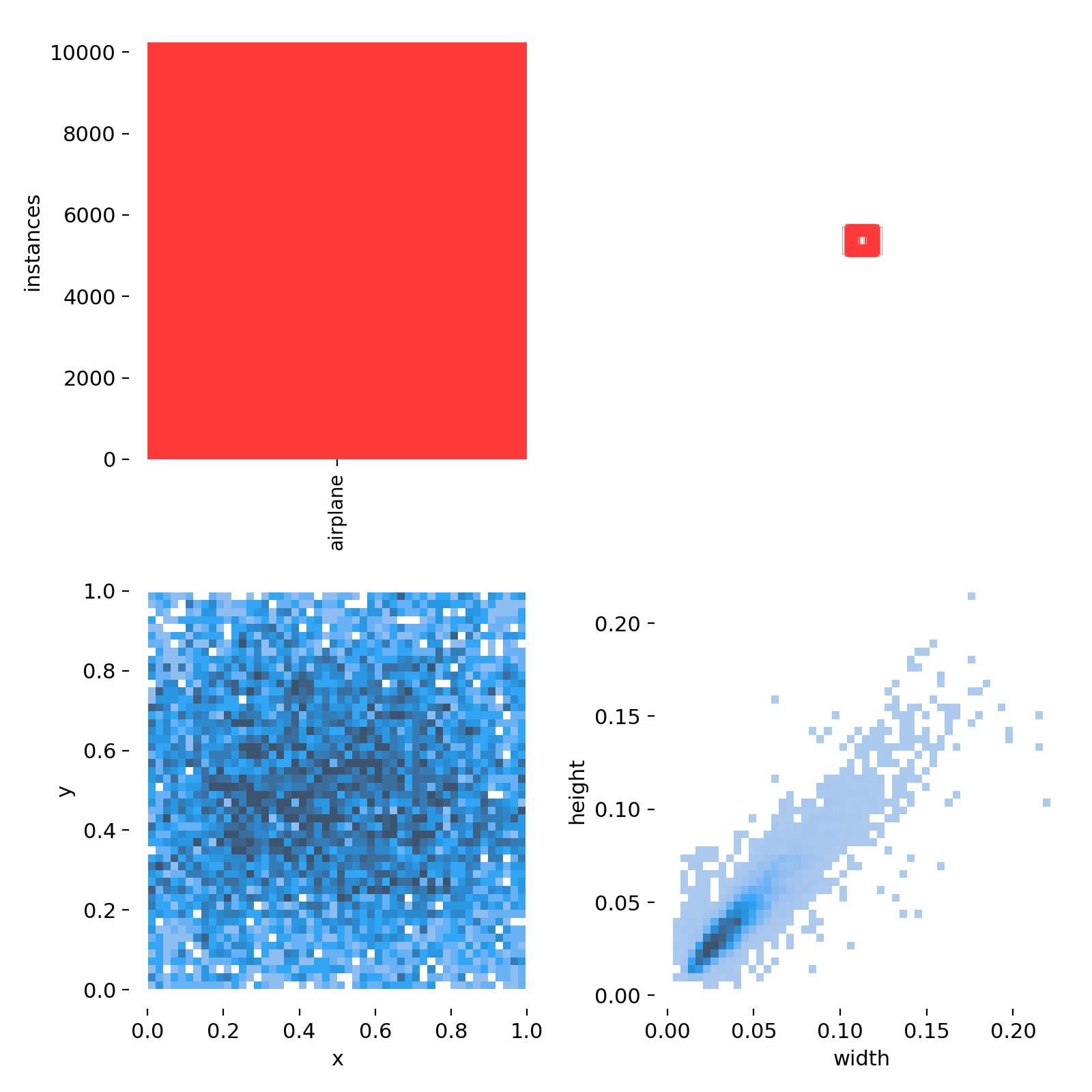 通过对数据集中目标的空间和尺寸分布的分析,我们发现目标在图像中呈现均匀分布,且尺寸普遍较小。这两个特点对于模型设计有着直接的指导意义。首先,均匀的空间分布意味着模型必须能够在图像的任何位置检测到目标,这要求模型具有很好的空间不变性。其次,小目标的普遍存在则要求模型必须能够在较低的分辨率下准确识别目标,这可能涉及到模型架构的选择,如采用更多层次的特征提取网络,或是加入能够处理细节信息的机制,如注意力模块。