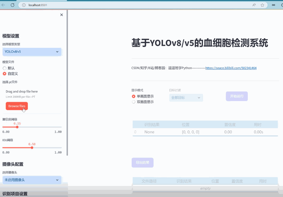 深度学习模型集成到网页交互:将训练好的深度学习模型集成到Streamlit应用中,使用户能够在Web界面上直接进行血细胞的检测和分析。通过Streamlit的功能,实现模型的动态加载和切换。
