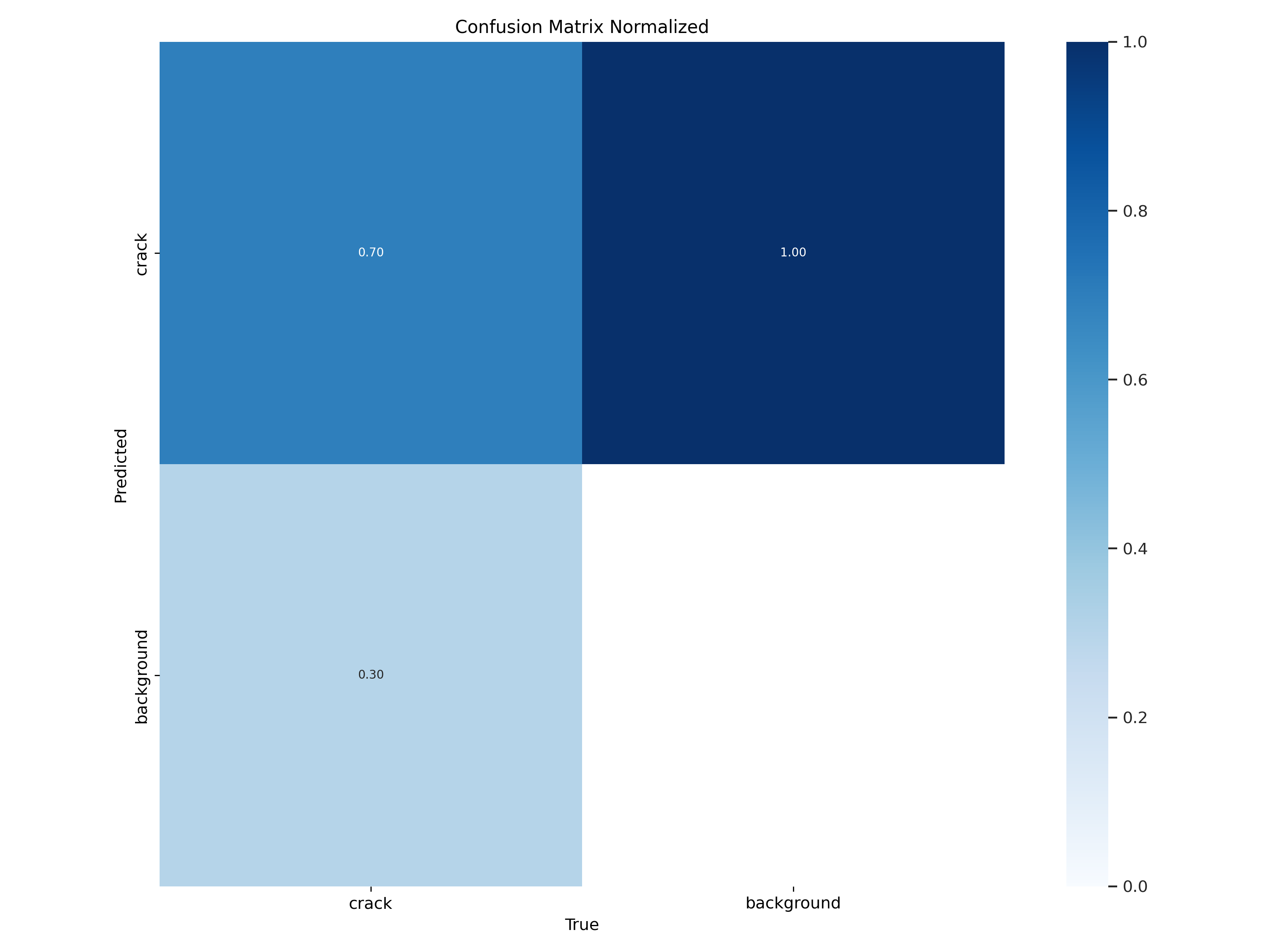综合以上信息,混淆矩阵提供了一个全面评估模型性能的机会。为了改进模型,研究人员应当深入挖掘每个类别的误分类原因,从而有针对性地调整模型架构、训练策略或后处理算法。通过迭代的测试和改进,目标是达到更高的准确率,更低的假阳性和假阴性率,最终实现一个既可靠又高效的路面裂缝检测系统。