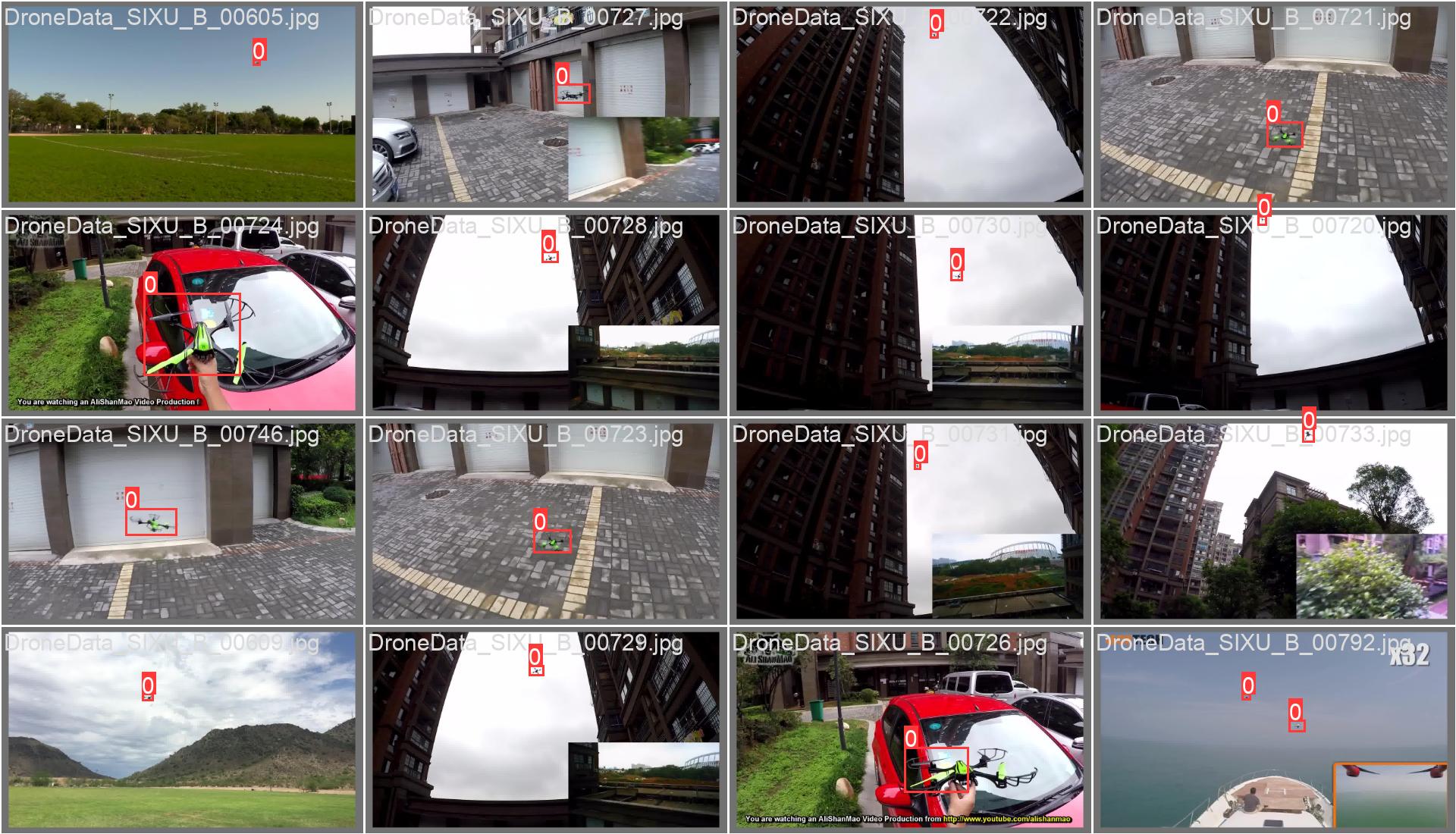 尽管数据集在处理上进行了标准化,但无人机的多样性——在颜色、形状、大小、背景环境及光照条件上的多变性,为模型的泛化能力提出了挑战。因此,我们在数据增强上也做了大量工作,包括随机旋转、裁剪、尺度变换和色彩抖动等操作,以期模型能在各种实际场景中都能表现出色。