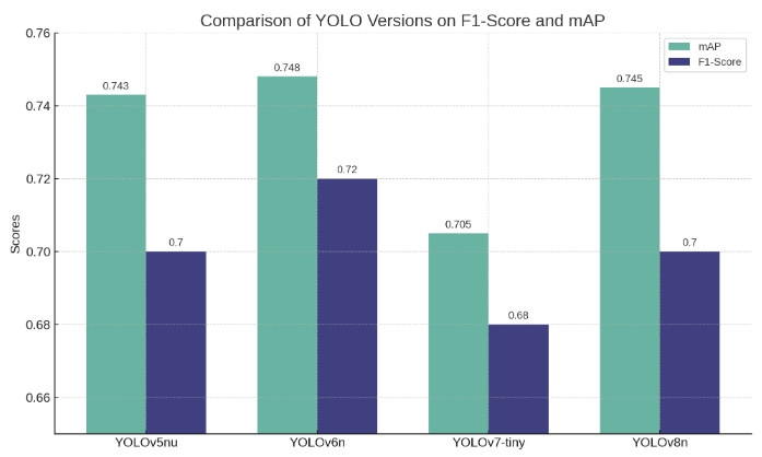 | 名称 | YOLOv5nu | YOLOv6n | YOLOv7-tiny | YOLOv8n |