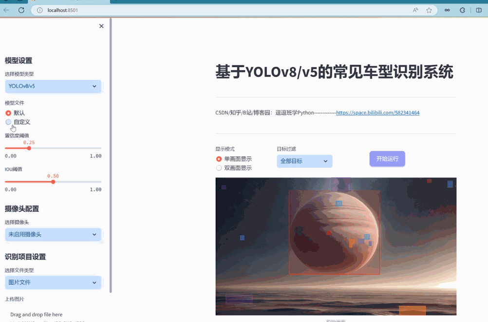 本文在常见车型识别领域做出了重要的贡献,不仅详细介绍了任务相关的文献综述,为读者提供了丰富的背景知识和最新的研究进展,还深入探讨了数据集的处理方法,确保了训练数据的质量和多样性。通过对YOLOv8/v7/v6/v5等算法的精心选择和综合评估,本文不仅阐述了各自的优势和适用场景,而且采用了Streamlit技术设计了美观且用户友好的网页界面,极大地提升了用户的交互体验。