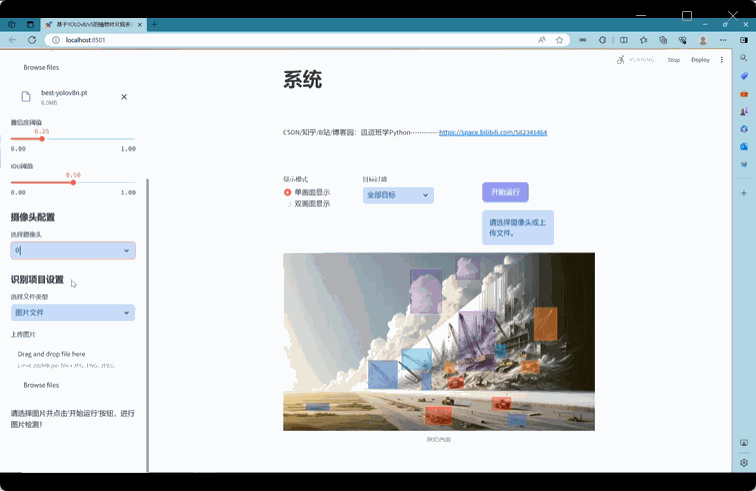 美观友好的网页设计:基于Streamlit框架设计了直观易用的网页界面,支持图像上传、视频流处理和实时摄像头捕获,以及模型切换功能,界面同时经过CSS美化,提升了用户体验。