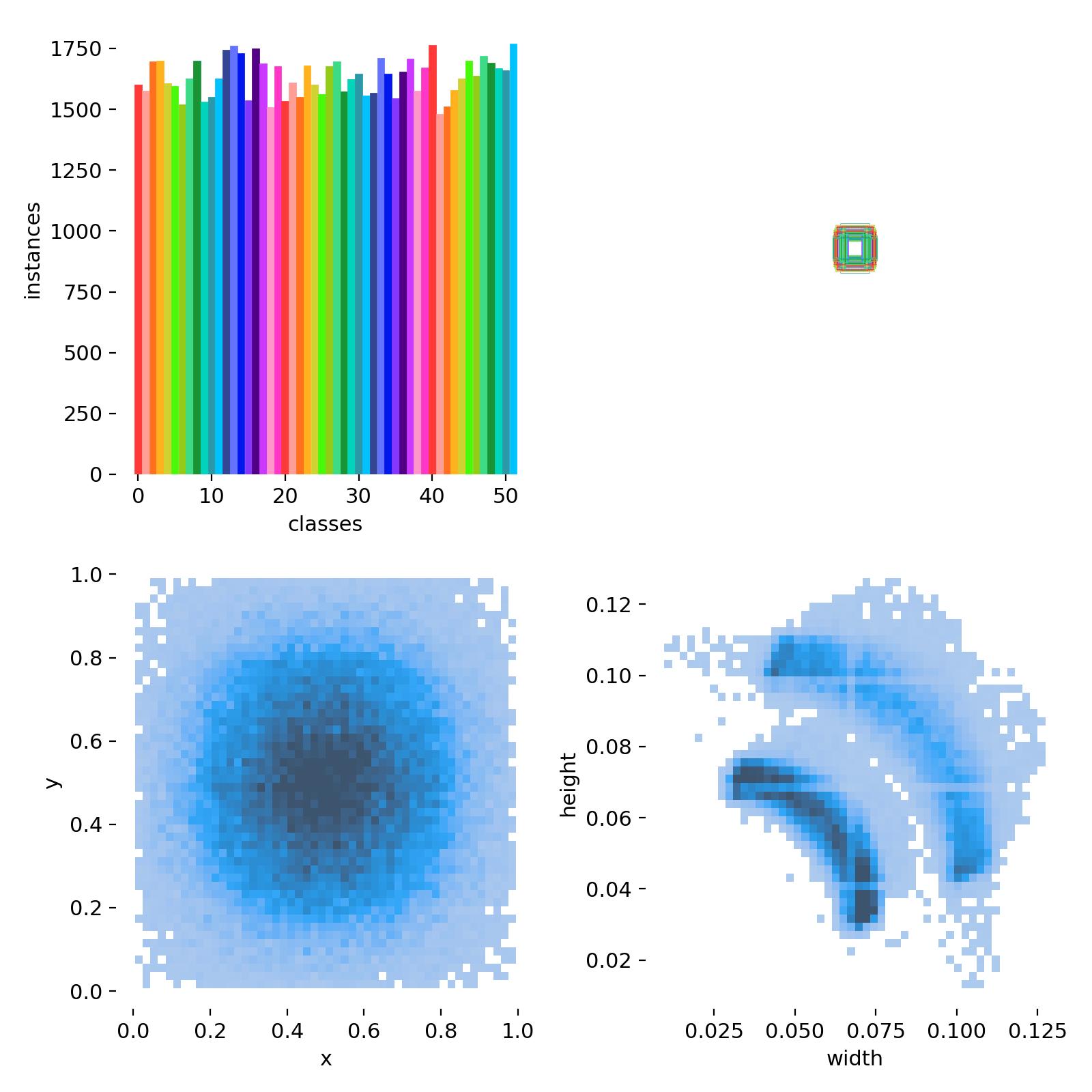 对象尺寸的分布告诉我们,大多数扑克牌在图像中占据的尺寸较小。这一发现对于优化检测算法尤为重要,因为在许多实际应用中,远距离或小尺寸的目标识别常常是一项挑战。为此,可能需要调整模型结构,或者使用专门针对小对象检测的算法改进。