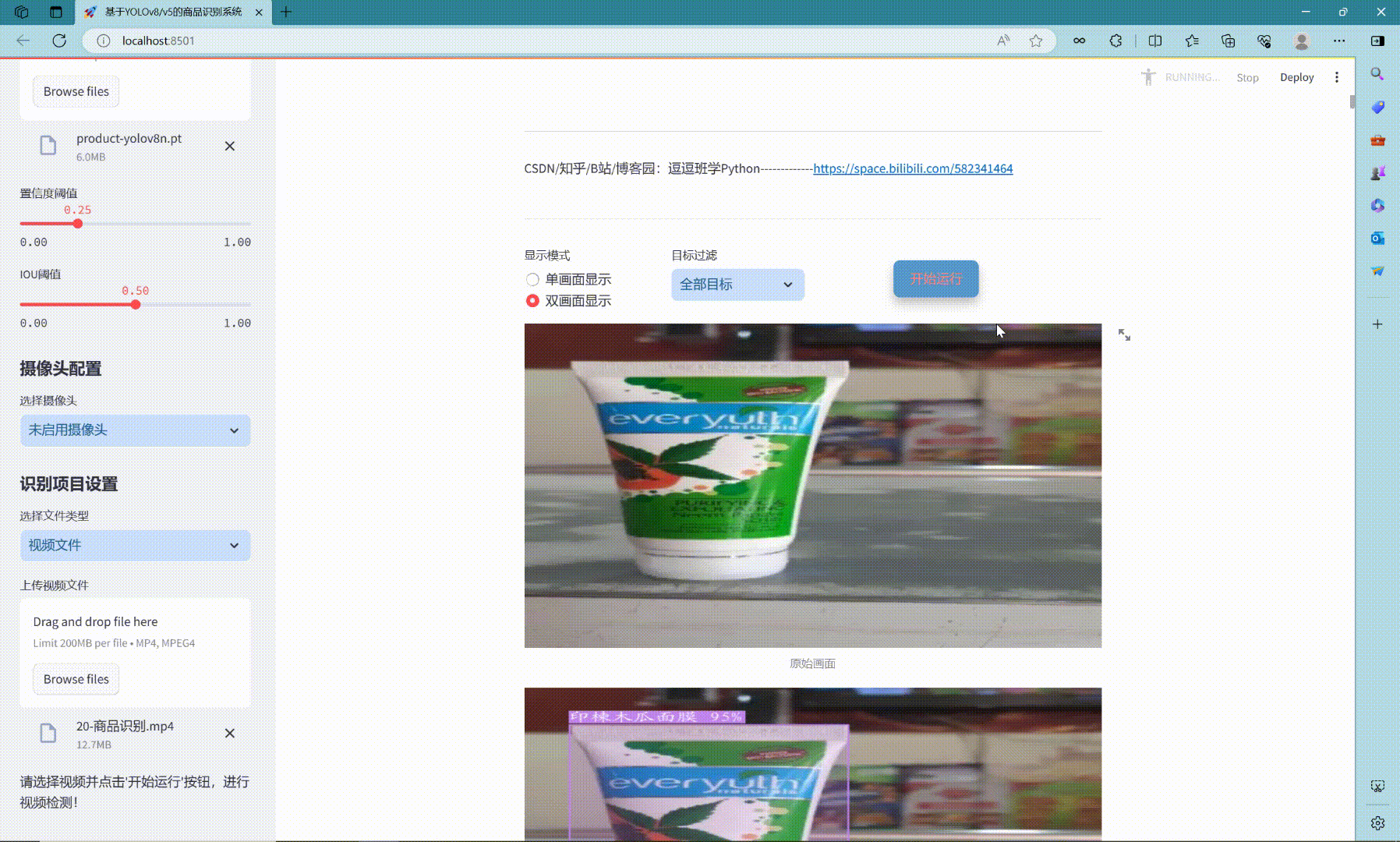 友好的用户交互界面设计:基于Streamlit框架,设计并实现了一个美观、易用的Web应用界面,使非技术用户也能轻松地进行商品图像的上传、检测和模型选择等操作,极大地提高了系统的可用性。