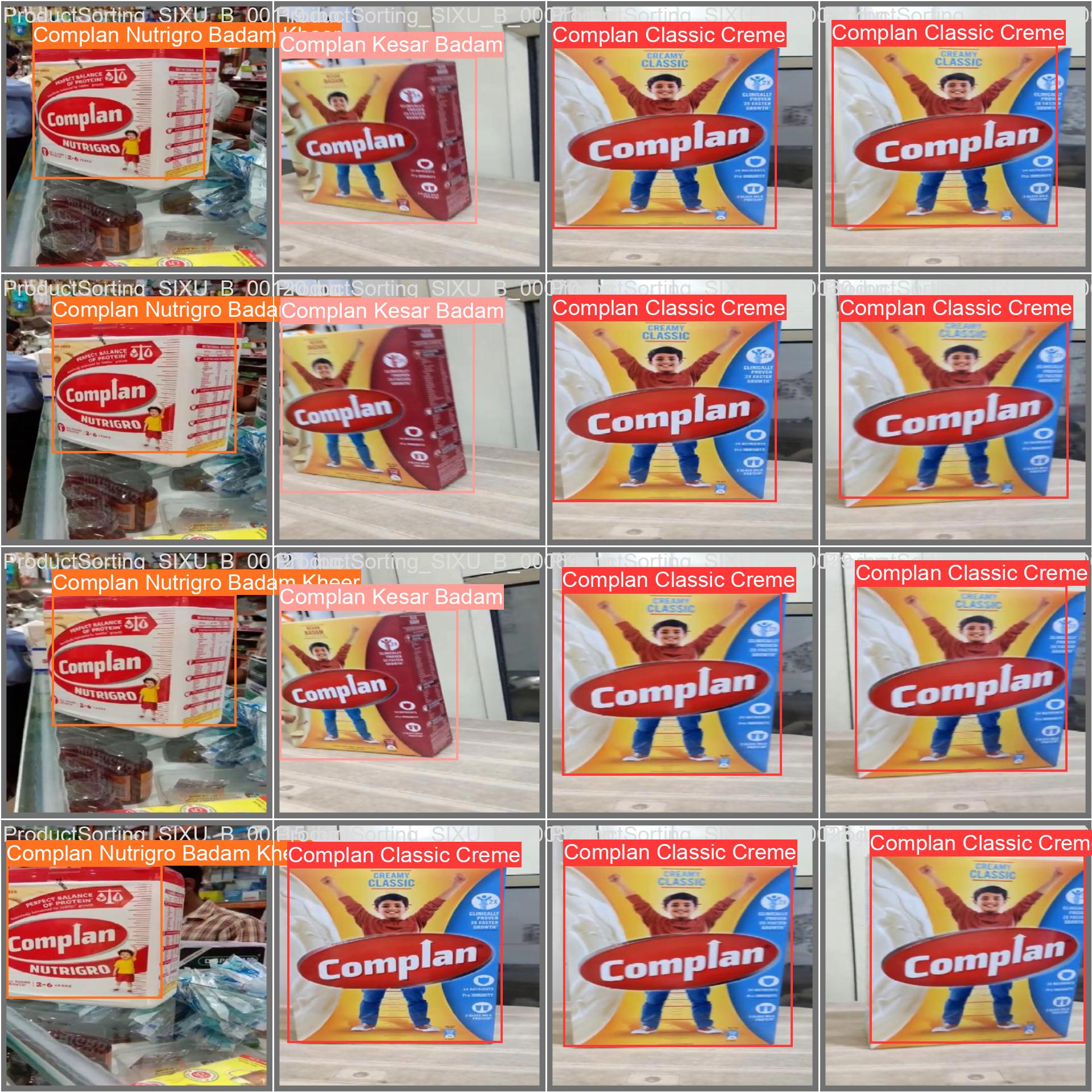 然而,也有一些类别,如“Complan Classic Creme”和“Glucon D Tangy Orange 1.KG”,它们的精确度较低,尤其是前者的精确度接近0,这表明模型在这个类别上几乎没有正确的预测。这可能是由于该类别在数据集中的样本量不足,或者其图像特征与其他类别差异不大,模型难以区分。