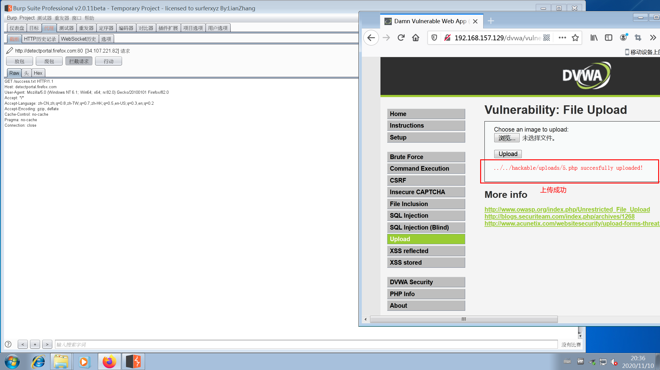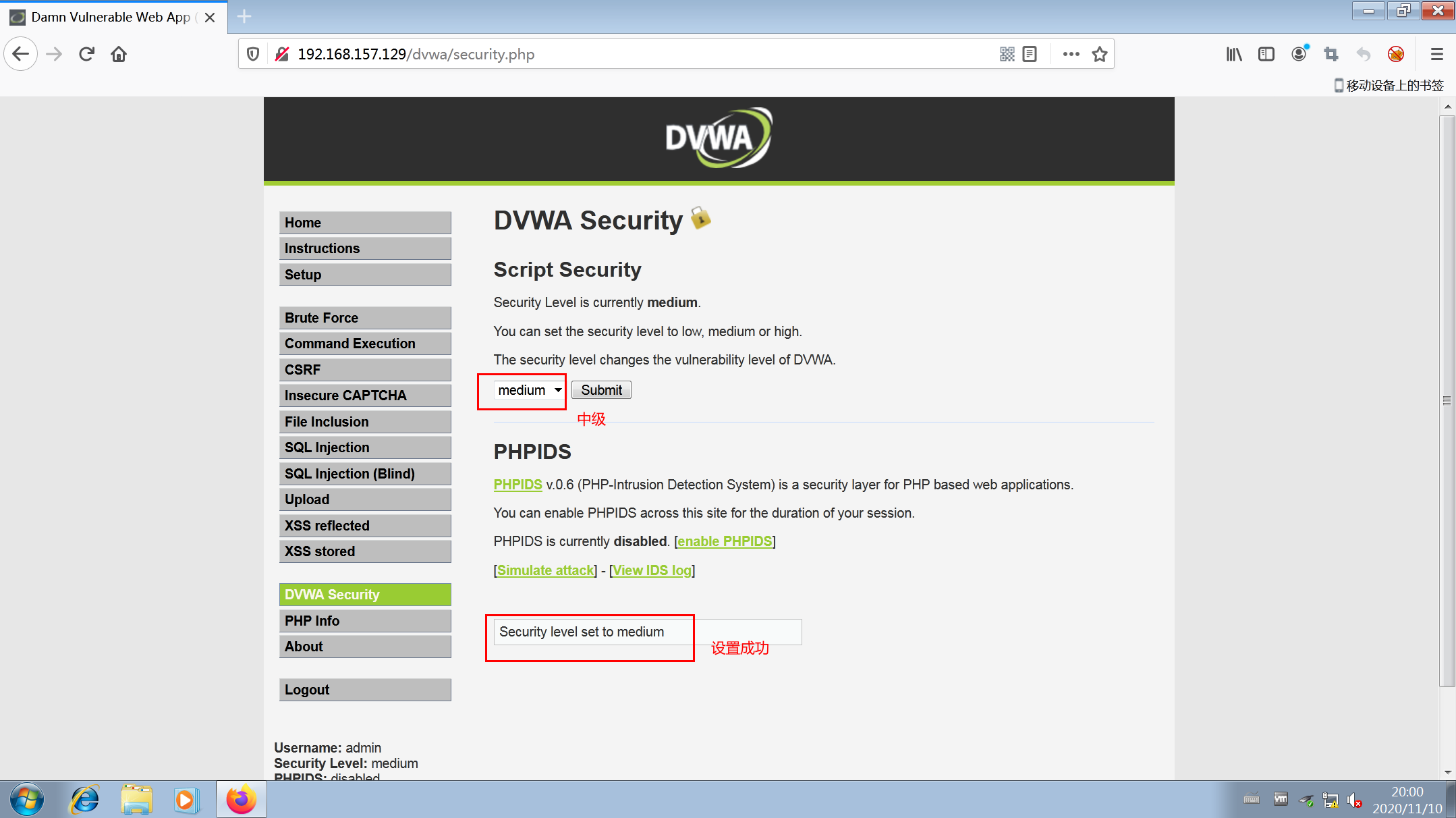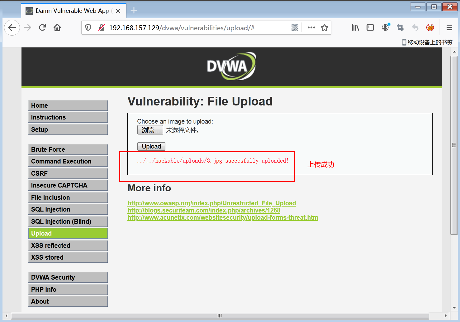 1.默认安全级别为低,选择文件上传漏洞