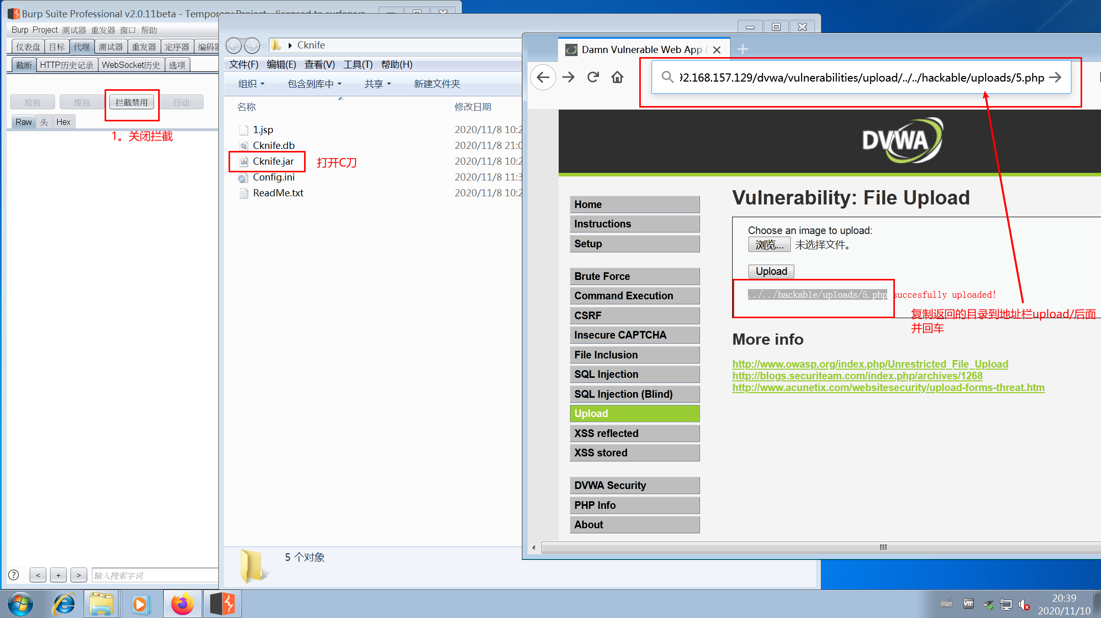 7.关闭brup suite拦截请求,将返回的路径复制粘贴到URL地址upload/后面回车,打开C刀