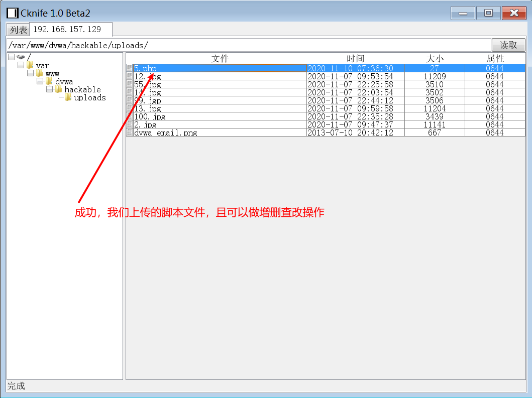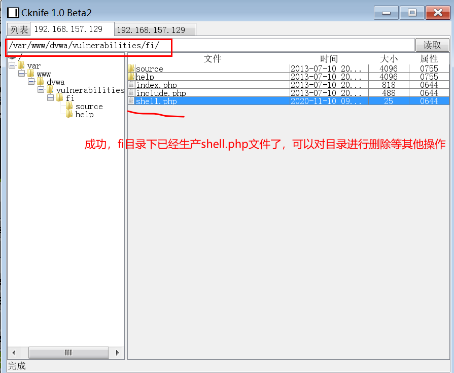 9.选择添加后的地址右键选择文件管理,成功后会看到DVWA的网站目录及文件,可以做增删查改等操作