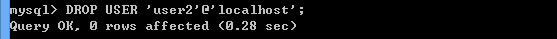 ○ DROP USER 'username'@'hostname' [ ,'username'@'hostname' ];