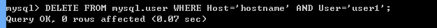 ○ DELETE FROM mysql.user WHERE Host='hostname' AND User='username';
