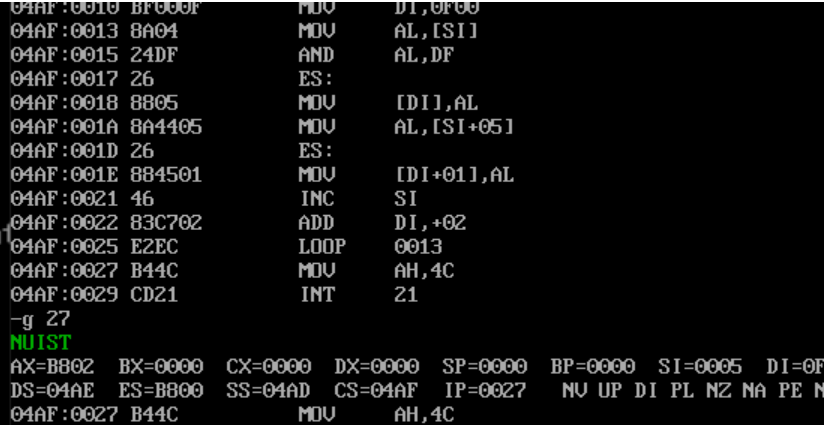 mov al, [si] ;将data段的第si个字节送入al,即Nuist的某个字符