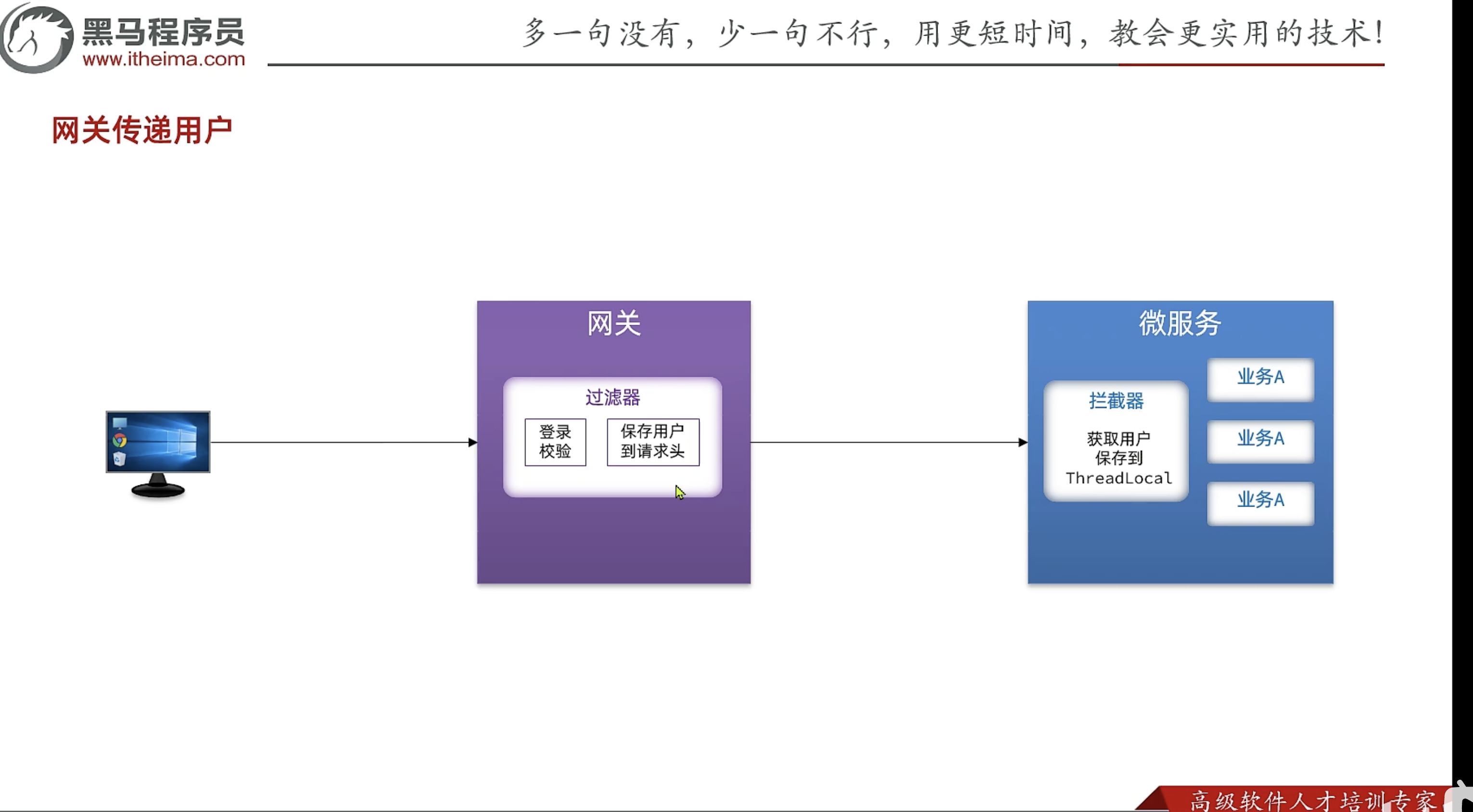 网关校验token后,把用户信息 保存到 http 头部;后续的用户信息传递 都是在http 头部;