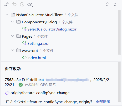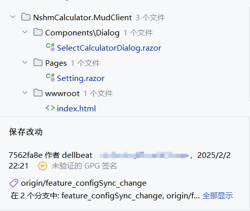 在完成复制之后,我像以前一样打开了Jetbrains的IDE(如Rider和WebStorm),在查看git提交日志时,发现签名信息处显示“未验证的GPP签名”,如下图所示