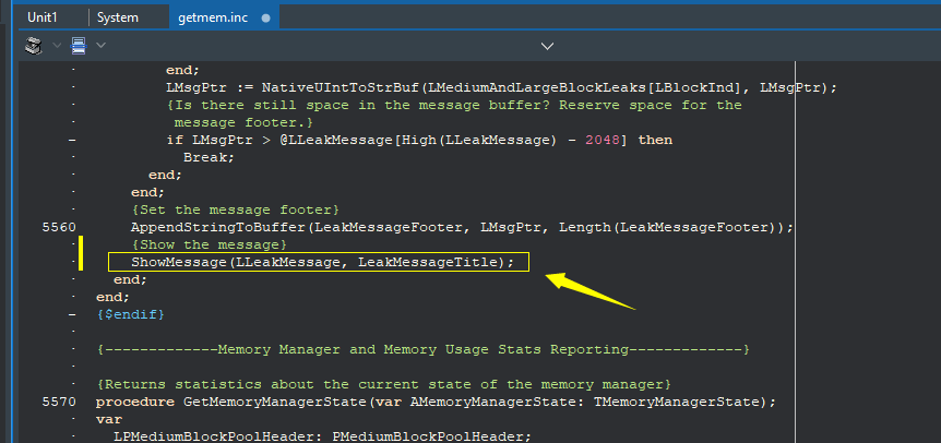 关闭时,经过测试 System 单元, 最终在 getmem.inc 文件里 , 有一句 ShowMessage(LLeakMessage, LeakMessageTitle); 把它改成 写日志,