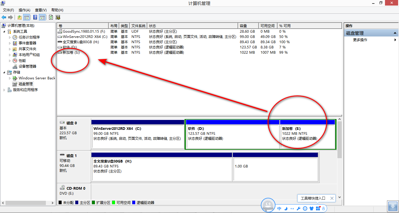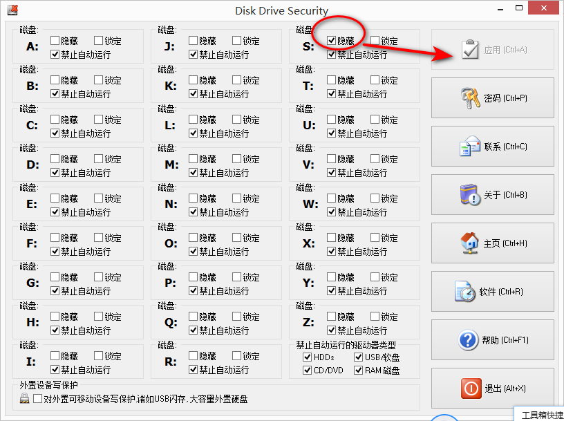 方法1:使用电脑软件 Disk Drive Security v3.2 隐藏刚才新建的简单卷 S: 硬盘分区,在简单卷 S: 硬盘分区之中新建文件夹 GoodSync1980 。