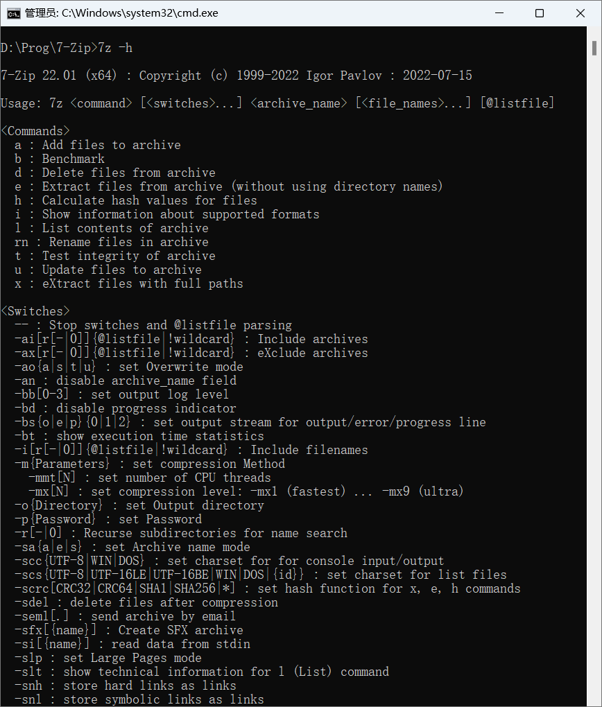 用7-Zip 版本 22.01 的命令行程序创建自解压可执行安装包