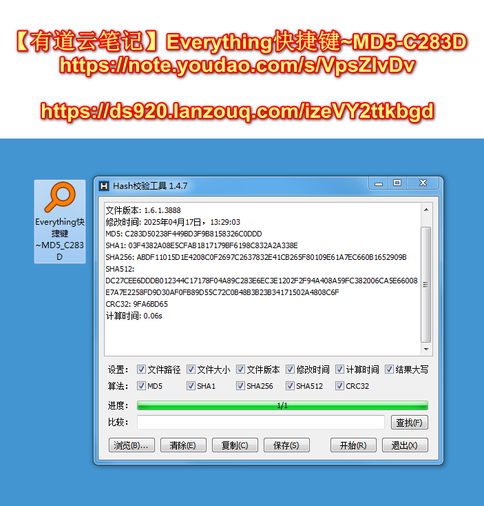 Everything-MD5-DC22-亲测可用-优点-重新打开后会加载原有数据库而不是重新扫描-不依赖运行库-缺点-索引必需扫描完成之后才能搜索-这一点没有MasterSeeker做的好用 2025-05-15